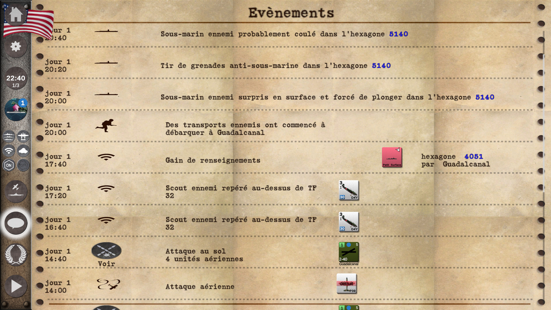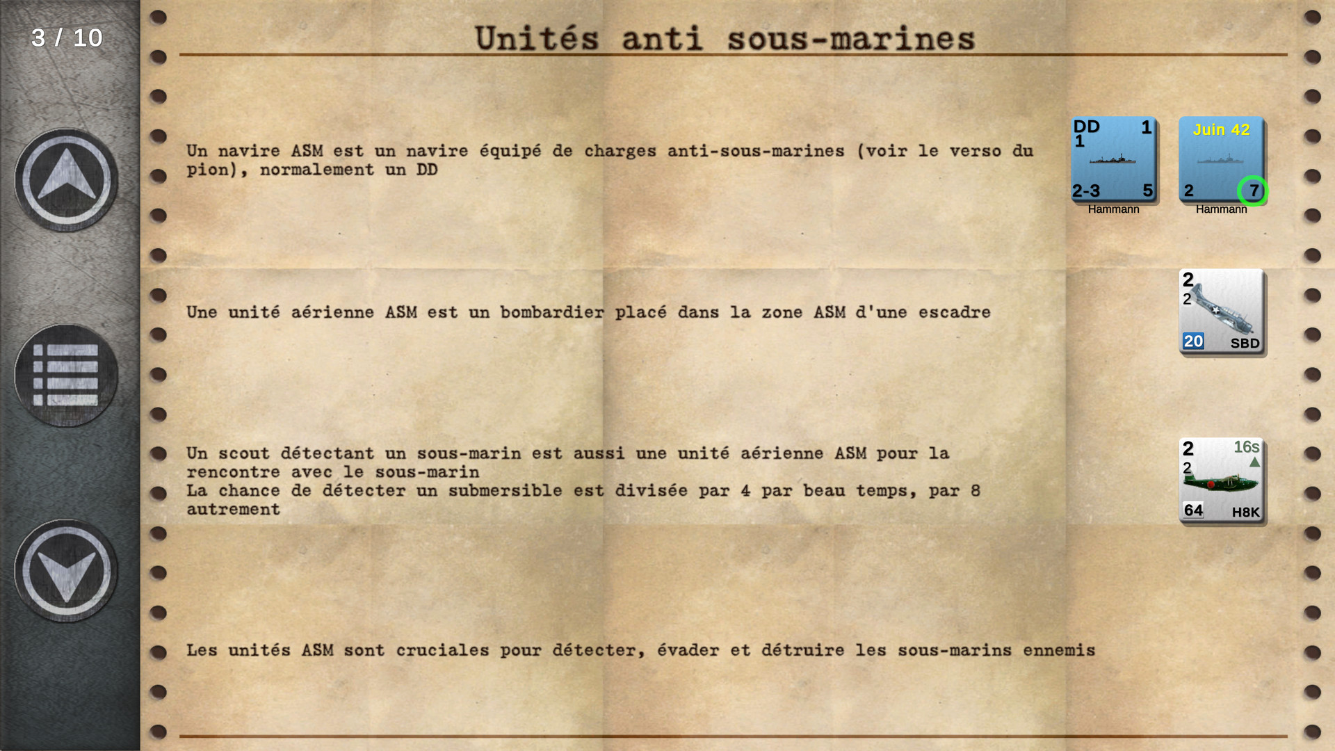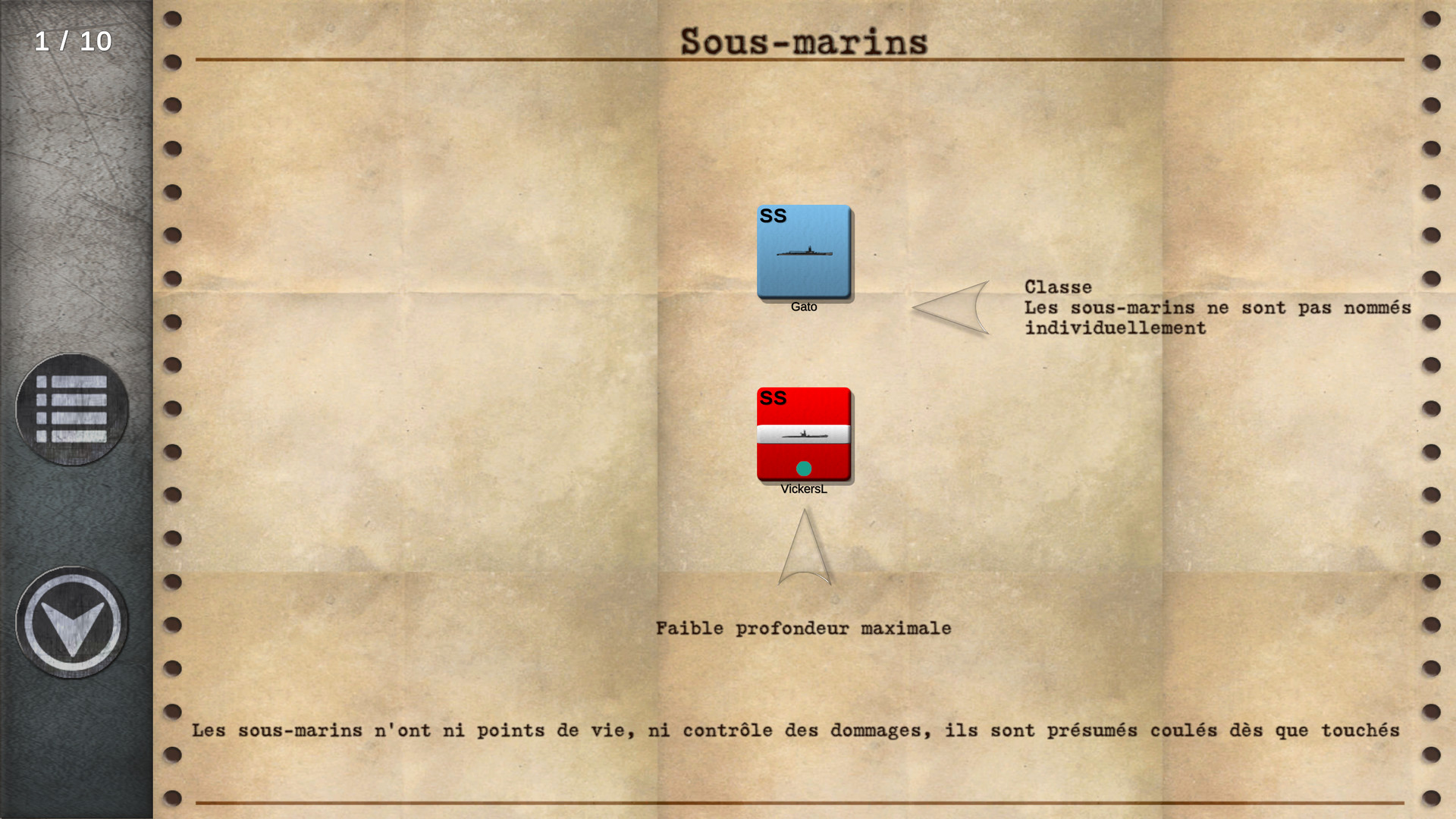 - Retournez les navires pour voir les torpilles, charges de profondeur et date historiques à la quelle ils ont été coulés