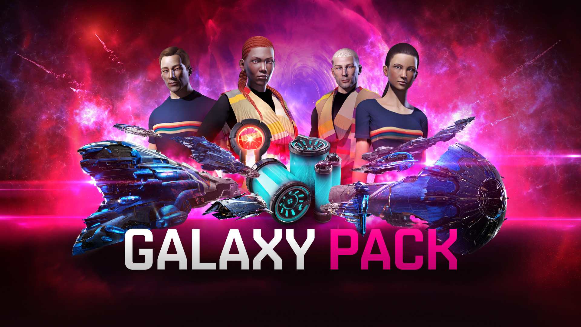 Full of striking SKINs, the Galaxy Pack also gives you a generous supply of event essentials, themed pilot gear, and performance upgrades.