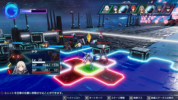 戦闘マップでのUIを大幅にリニューアル。キャラクターアイコンの小型化に加え、移動範囲や攻撃範囲の表現をグリッドマスからルミナスラインへと変更して視認性が向上!