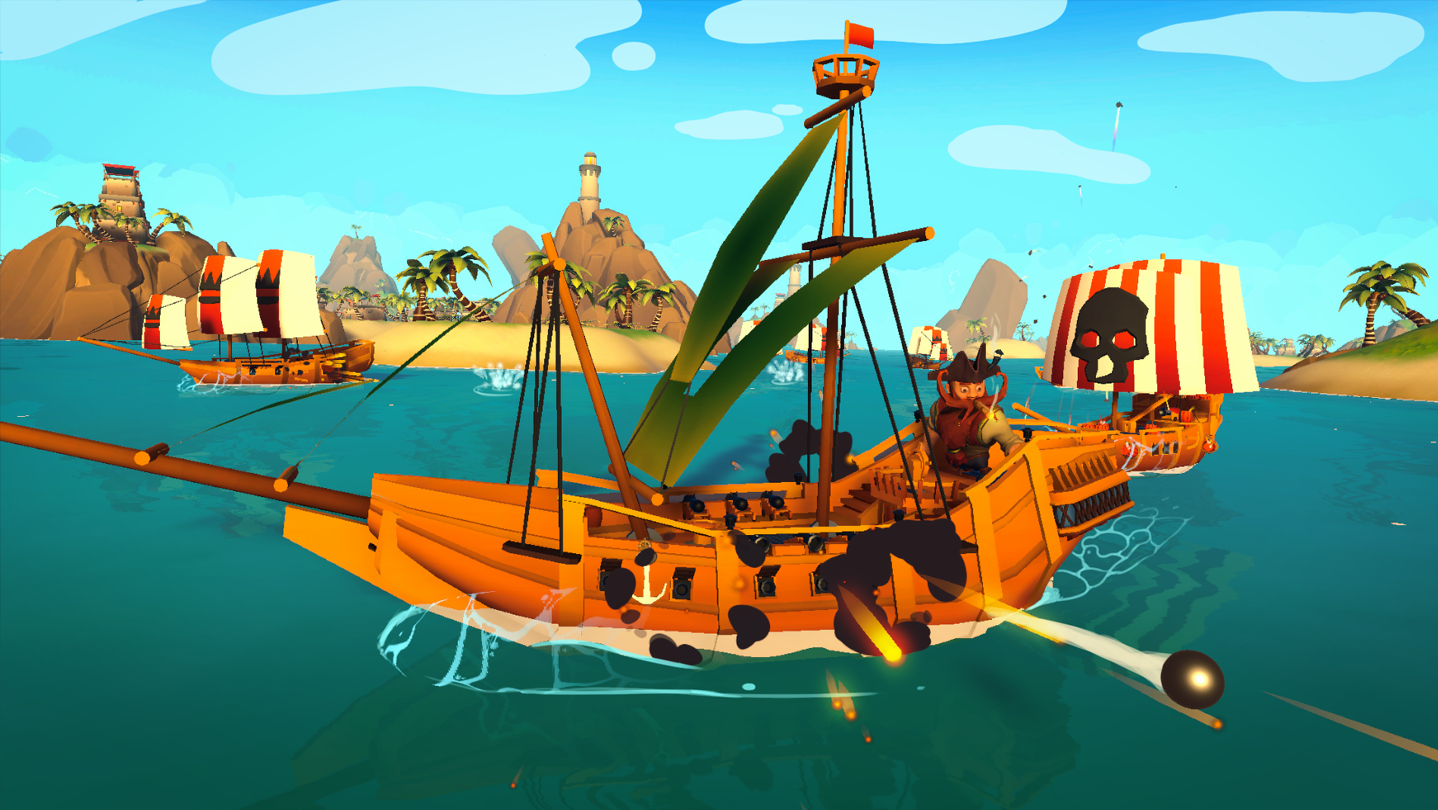 The game is set in a sea with various islands where the player can sail around. On the sea, there are various adversaries that the player can battle and kill. The player can also embark on these islands to collect gold or do tasks for their objective.
