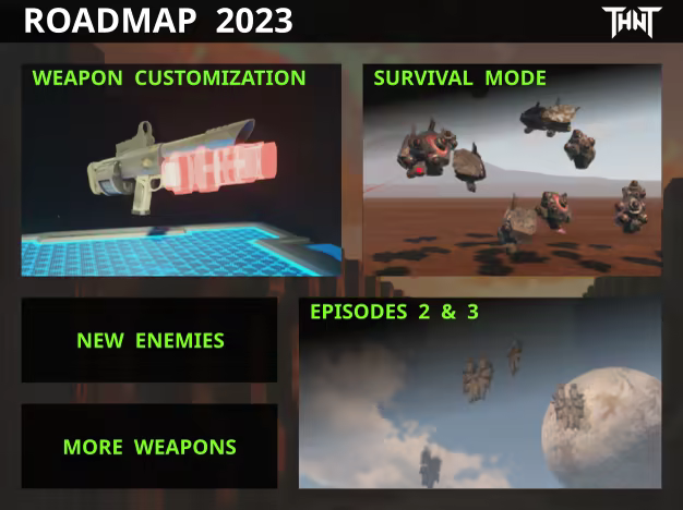 THNT is an action packed first-person shooter. Inspired by classic FPS titles, it also brings modern mechanics into the mix.