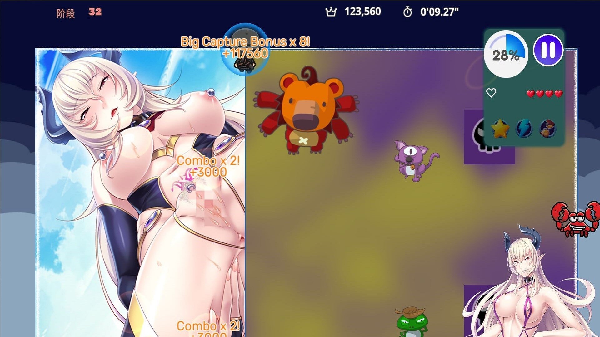 你的耐心和灵敏是否够用!一点一点揭开覆盖在H少女上的遮盖,才能看到热辣的全貌!!别被辛辣刺激的Hentai场景夺走全部注意力哦!因为会有不识趣的敌人冲过来试图破坏气氛!