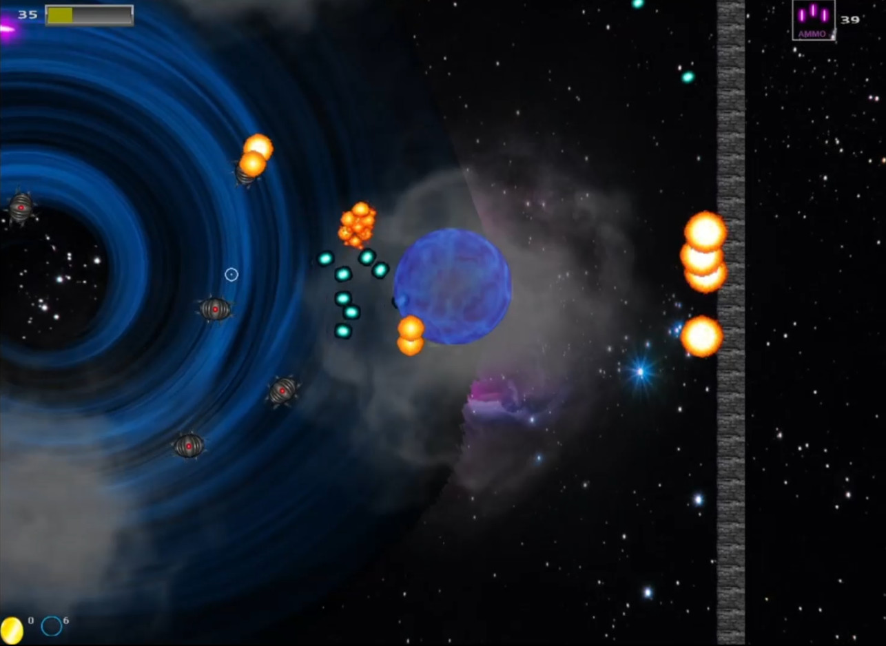 Solitarius is a 2D top-down wave shooter set in a sci-fi space environment. It is a free minigame that contains six different levels, eight different enemies and nine different weapons. Instead of surviving as long as possible you have to make it through each level.