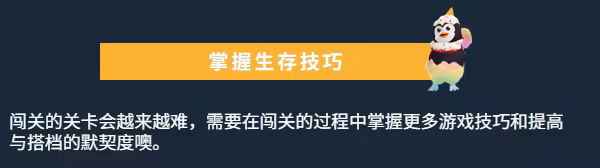 最佳搭档是一款双人紧密合作的多队闯关乱斗游戏。冠军之路,充满阻拦,你的队友,也许才是你最大的敌人!在这个友谊的小船说翻就翻的游戏里,尽情欢乐吧,或者,在这里遇到那个跟你最默契的灵魂伴侣。