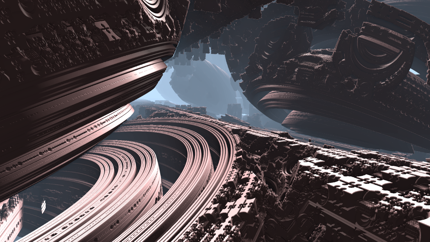 Explore imaginary landscapes, like you're flying in another world. Observe and dive into those chaotic shapes all around you. And even transform them! You're totally free to move where you want, you will discover a tremendous variety of shapes and colors!