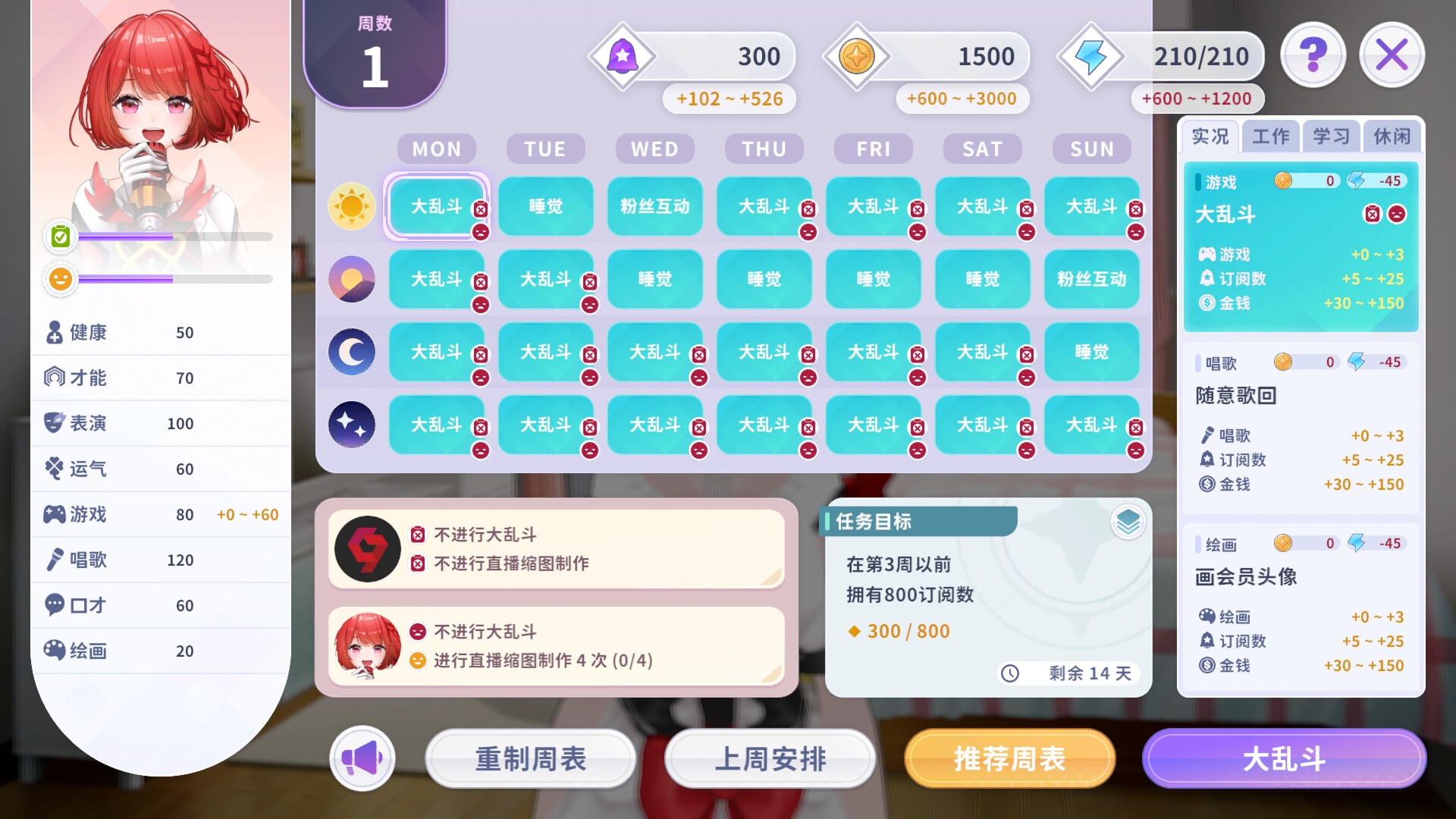 培育过程将不会是一蹴而就的,需要反复培育 VTuber 并强化经纪人的天赋树,让培育的角色越来越强,有点类似 Roguelike 的玩法。