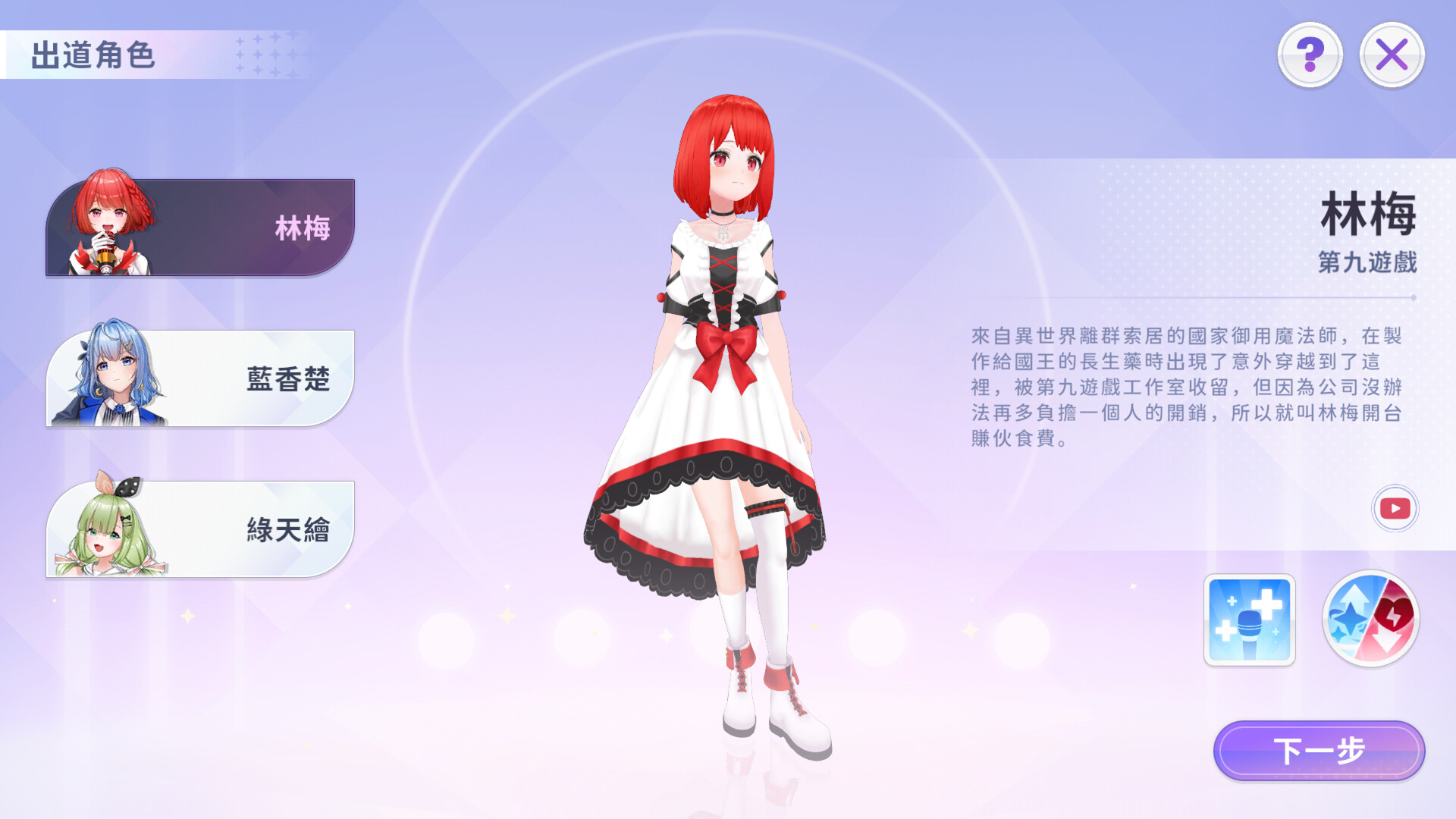 《Vtuber大師》是一款Vtuber經營養成的遊戲,玩家會扮演經紀人的角色陪伴著Vtuber面臨各種事件、一起解決並最終達成生涯目標。