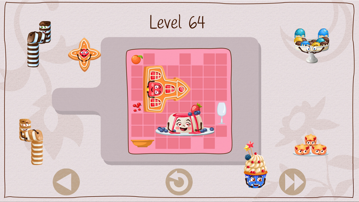 Süßes 2D-Puzzlespiel mit Süßigkeiten und Kuchen wird dich entspannen! Wenn Sie nur ein bisschen Zeit für sich haben möchten. Ordne deine 50 süßen Freunde auf dem Raster von 100 Levels an.
