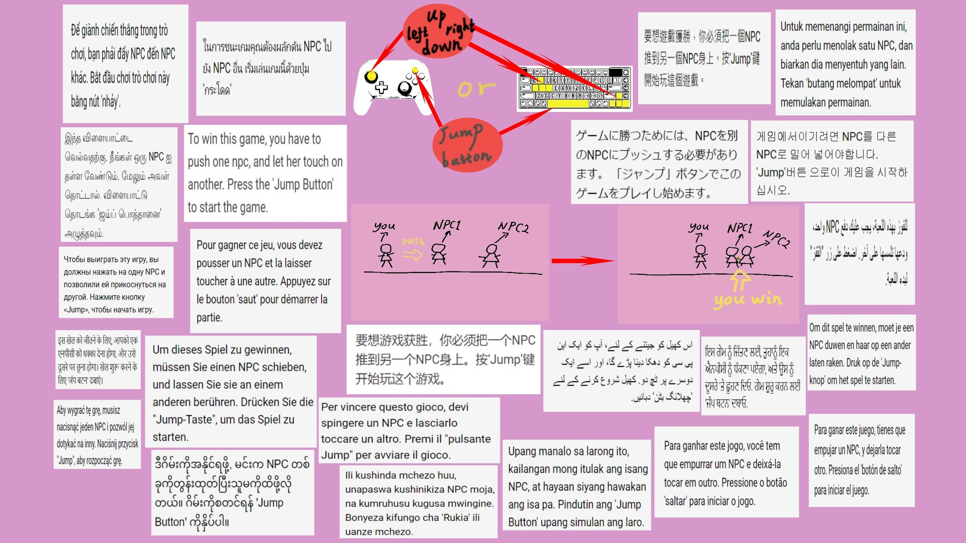 Це 2D гра, ваша мета — використовувати себе, щоб зіткнутися або перетягнути NPC, щоб він зіткнувся з іншим NPC. Також є вільний час, коли ви можете слідувати за нашим персонажем, стрибати на скакалці, займатися боксом, грати у футбол тощо, щоб підтримувати форму, тому це також буде фітнес-грою. Це абсолютно новий вид гри, не схожий на будь-яку гру, яку ви коли-небудь бачили раніше.