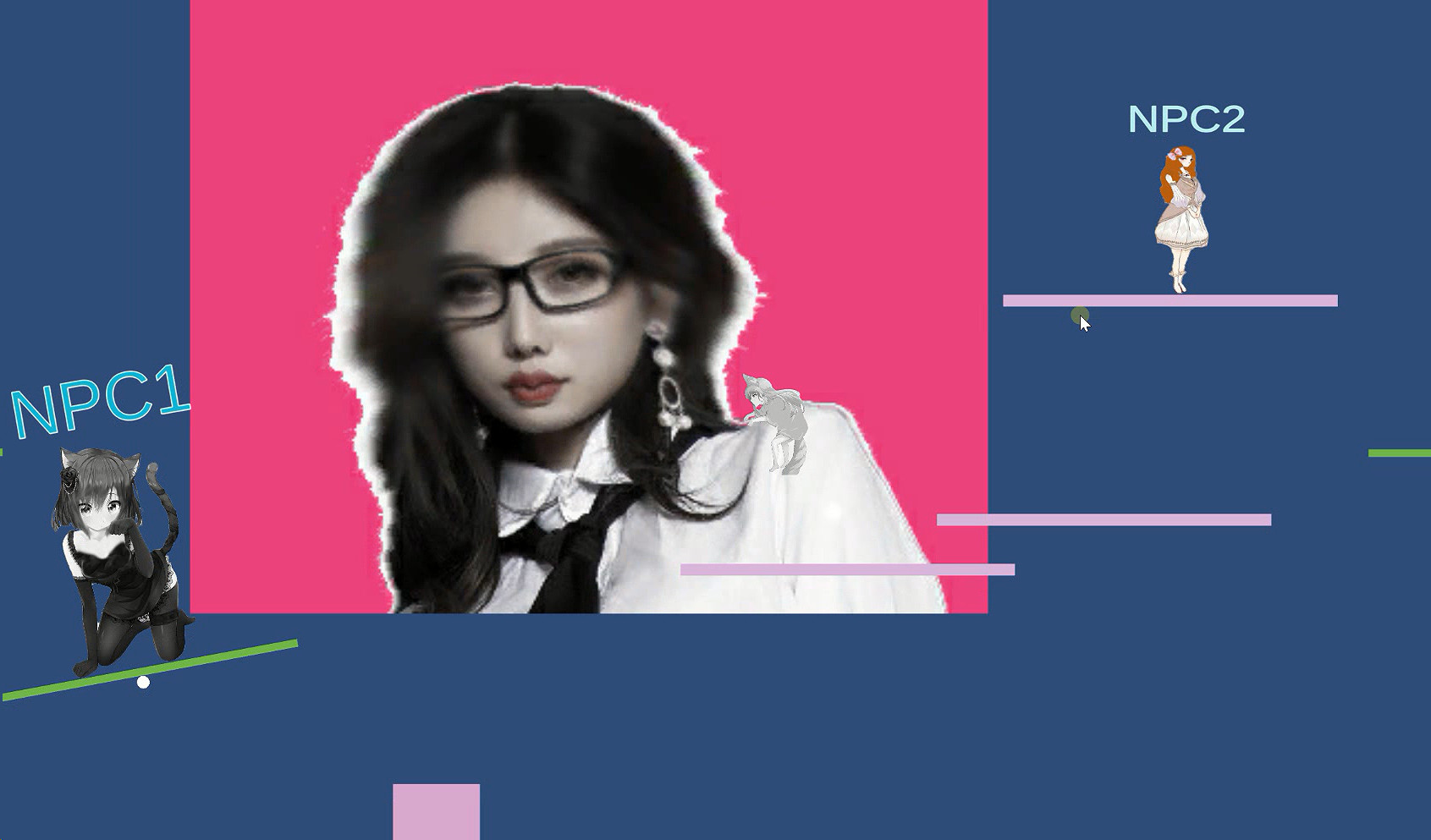 This is a 2D ACT Game, and a fitness game. your target is use yourself to collide or drag one NPC to let it collide to another NPC, and it also has leisure time to let you follow our character to play jump rope or boxing and so on to fit your body.
