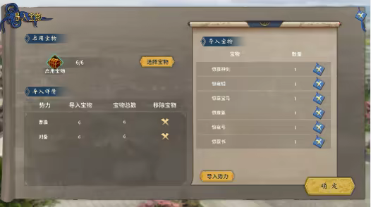 《宝物编辑器》增加了自建宝物的功能,在宝物建立后,可以根据意愿在新建存档时将宝物分配给对应势力。