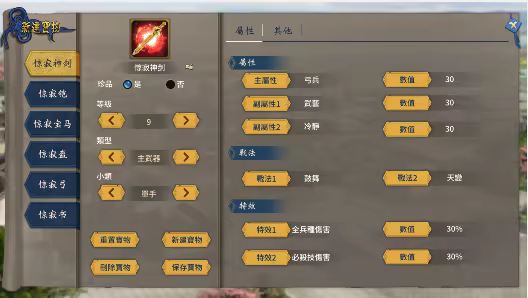 《寶物編輯器》增加了自建寶物的功能,在寶物建立後,可以根據意願在新建存檔時將寶物分配給對應勢力。