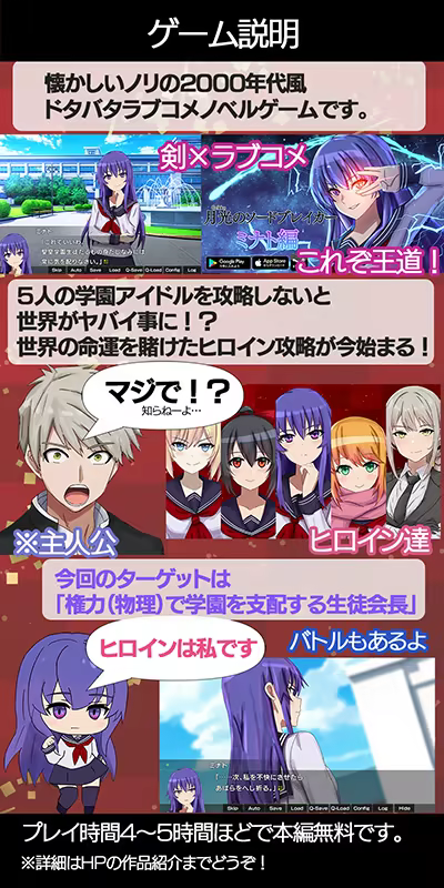 On the stage where swords, machines and ponytails appear in modern society A school romantic comedy visual novel where you can enjoy exciting and exciting love patterns This is the first in the moonlight series. A cool and stoic girl in this work, You can enjoy Minato's love story.