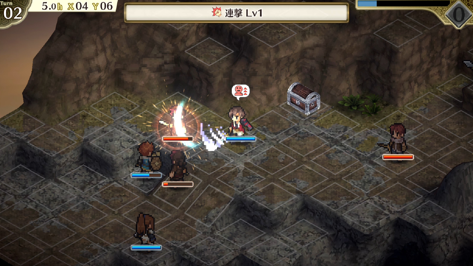 戦闘は高低差のあるクォータビューのマップで行われ、正面・背後・横方向で変わる戦闘結果、味方キャラの立ち位置による援護効果など戦略性の高さが特徴です。
