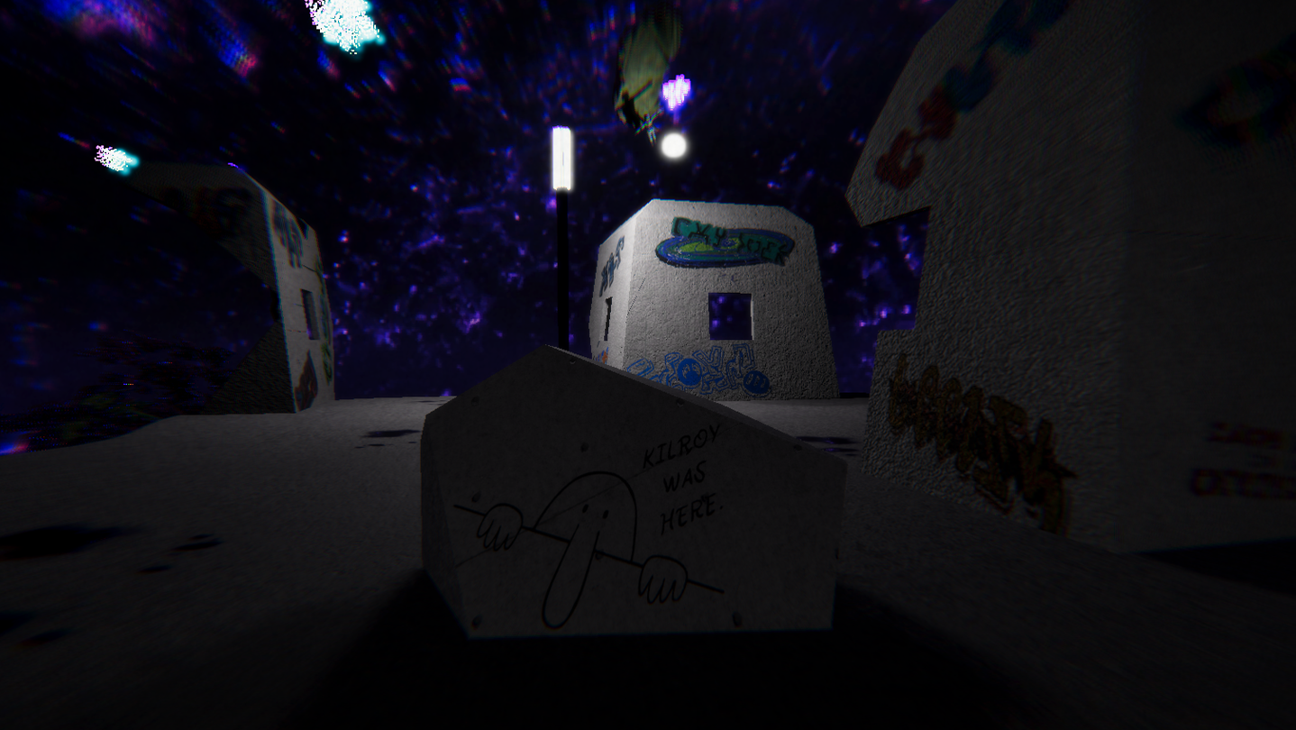 You are stuck in an unknown place, completely alone for eternity. Every decision you’ve made, will make, and could have made somehow rattling around your head. The only thing you can understand is a rock, with a gratified picture and some text that reads ‘Kilroy Was Here’!