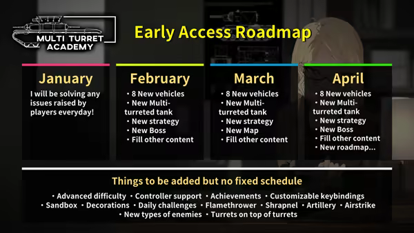 « My early access version included all core gameplay mechanics, and my main focus afterwards will be on adding more content such as additional vehicles, crew skills, and maps. I believe that with the addition of more content, the replayability and strategic depth will significantly increase. »