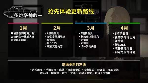 “抢先体验版已包含所有核心游戏机制,目前超过80辆可选二战载具(其中有10辆多炮塔坦克),20余个乘员技能、10余种车体升级、3种任务模式、3张地图。”