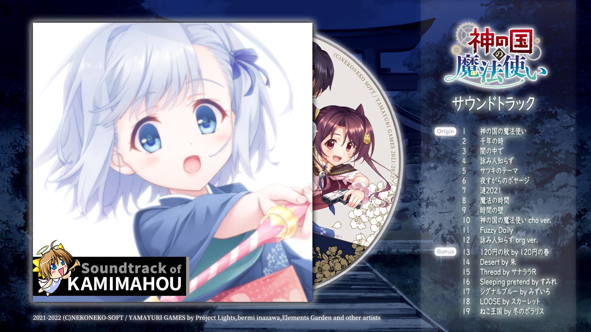 ボーカル曲フルバージョン3曲と2曲アレンジ、オリジナルBGM7曲、ねこねこソフトの20年間の作品で作られ本作品に使用したボーナス8曲、合計19曲の大ボリューム。