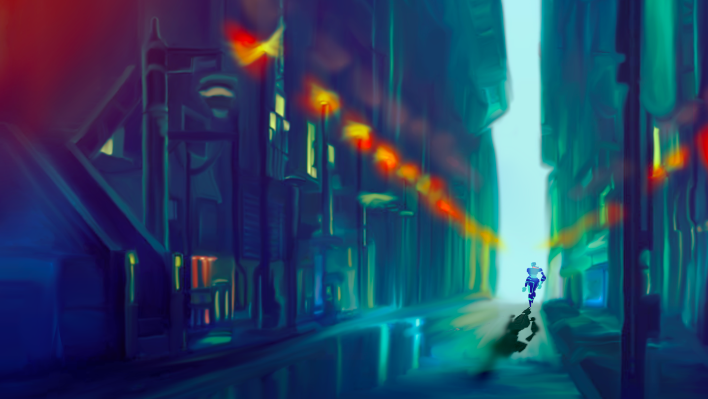 Enjoy a cyberpunk noir visual story told through a shifting, five color palette with cinematic camera angles full of mind bending imagery.