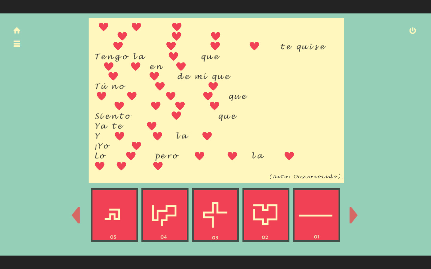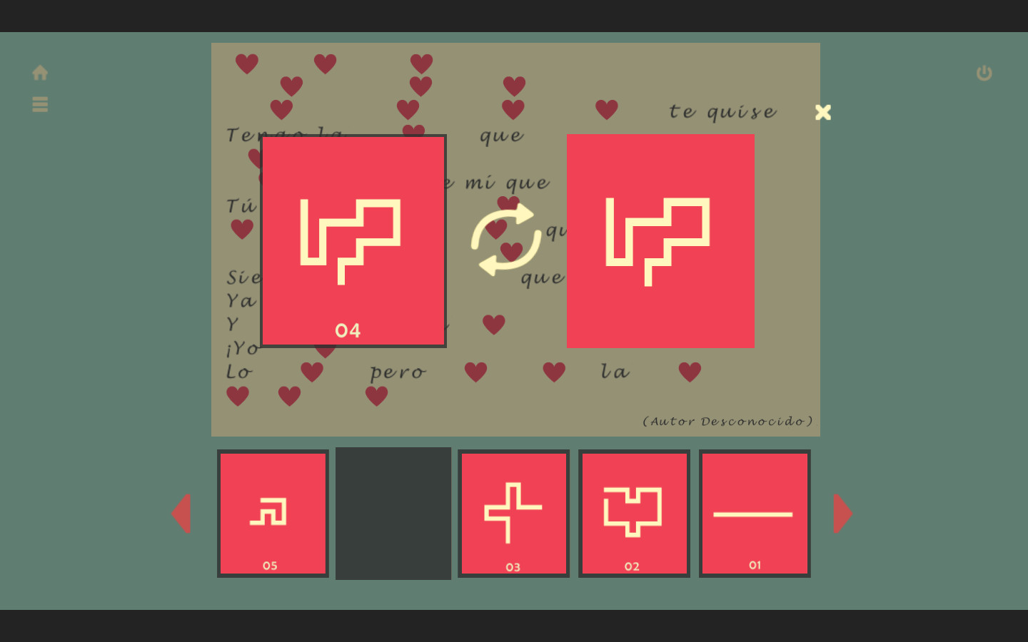 ¡Acabas de recibir una carta de amor codificada! En este puzle minimalista, tendrás que dibujar una sola línea para llenar todo el tablero. En cada nivel resuelto, obtén un código para revelar un pedazo de la carta. Reúne los códigos, lee la carta y descubre el mensaje.