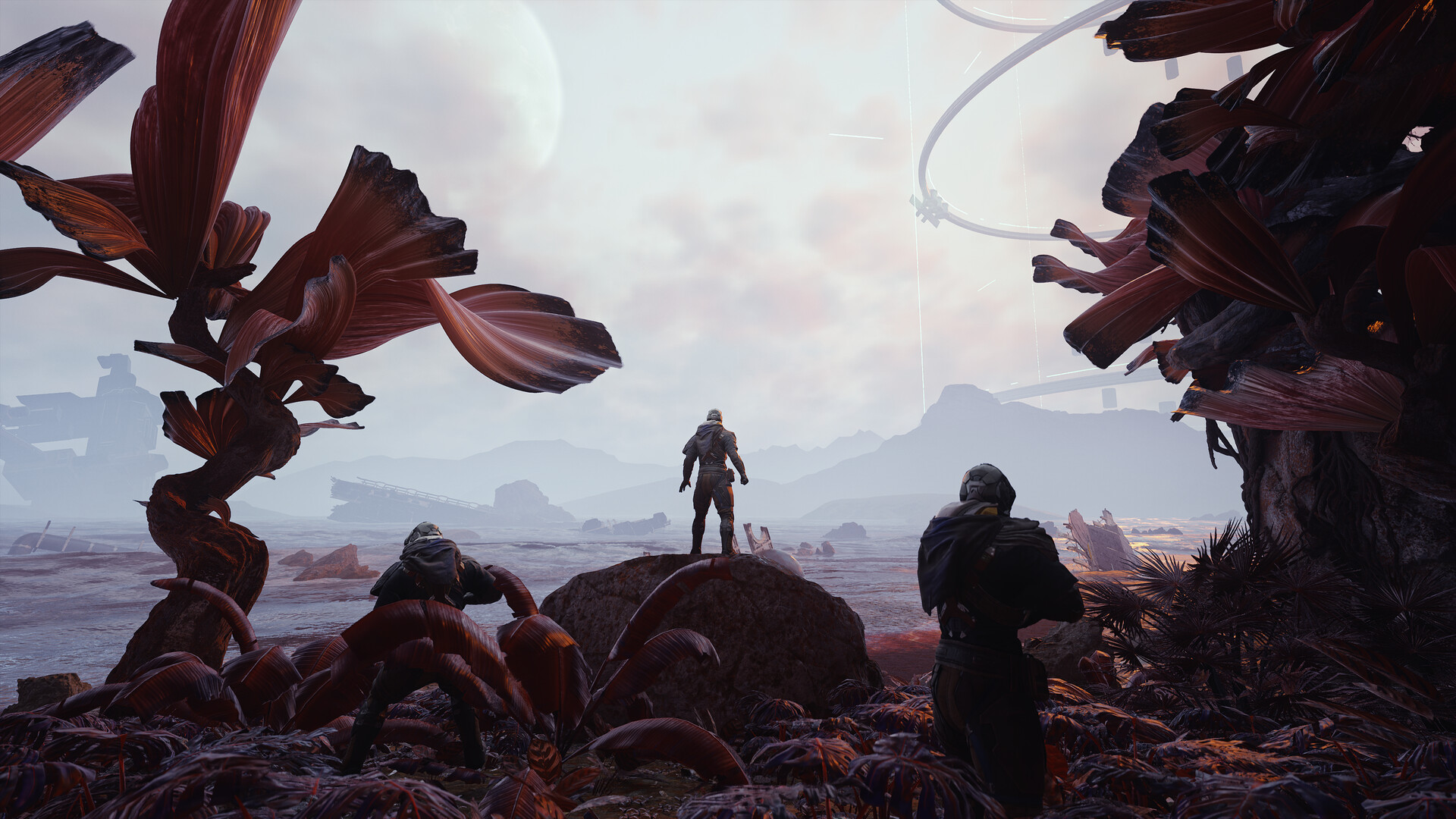 Explore stunning but dangerous planetary environments. Carve your own path through the wreckage of warships, poisoned swamps, alien jungles, and other harsh worlds.