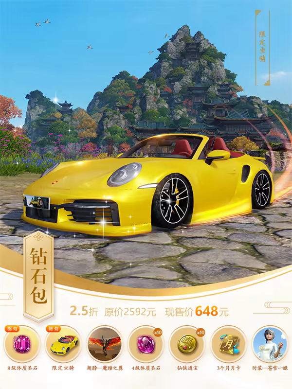 礼包内包含:8级体质圣石、限定坐骑,翅膀—魔瞳之翼、4级体质圣石*8,仙侠通宝*10、3个月月卡、时装—苍雪一澈