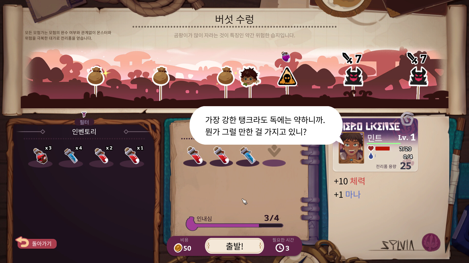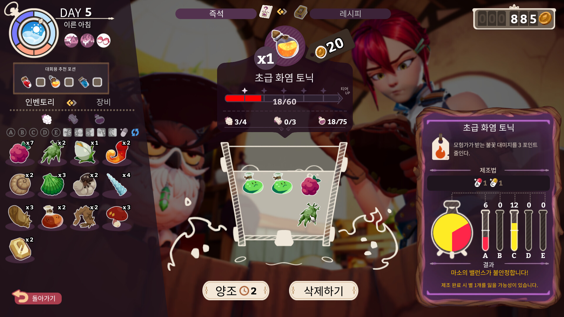최고의 재료를 선택해서 가장 기본적인 물약도 뛰어나게 만드세요. 맛과 향을 완벽하게 다듬으면 가장 까다로운 손님도 만족시킬 수 있답니다. 하지만 조심하세요. 까딱 잘못하면 아주 끔찍한 결과가 나올 수도 있으니까요!