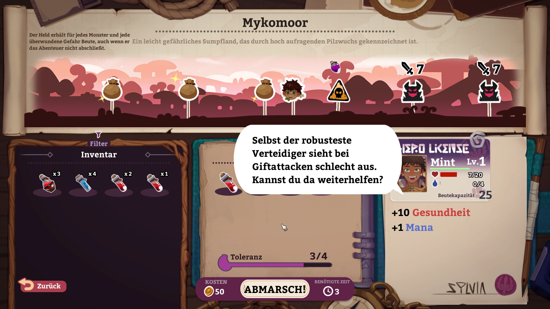 Verhandlungen können stressig sein, wenn jede Münze zählt, aber du wirst Sylvias Stress mit Leichtigkeit bewältigen, wenn du deine Karten richtig ausspielst. Baue Freundschaften mit Abenteurern und anderen Ladenbesitzern auf Rafta auf, um noch fortgeschrittenere Verhandlungstaktiken zu lernen.