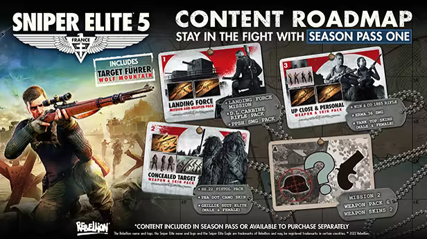 使用《狙击精英5》第一张季票继续战斗!返回前线,参与两项全新扩展任务战役,用正宗的二战武器改良版武装自己,为你的狙击手配备新角色和武器皮肤。