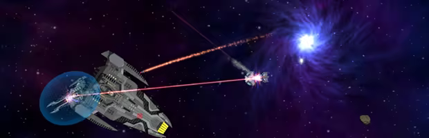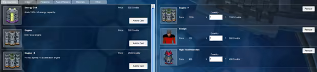 Every ship has a certain amount of weapon slots. For example, a Military ship will have more weapon slots than a Science vessel and a level 2 ship will have more weapon slots than a level 1 ship. Weapons can be upgraded in the Starbase Shop and added to these slots and then used in real-time space battles. All weapons use energy generated from the engines. Some weapons such as laser cannons use much more energy than other weapons.