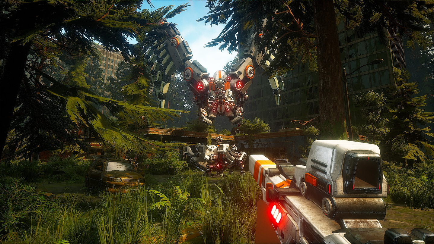 Shoot, construct, and ride robots in this post apocalyptic open world survival crafting free-to-play prologue!