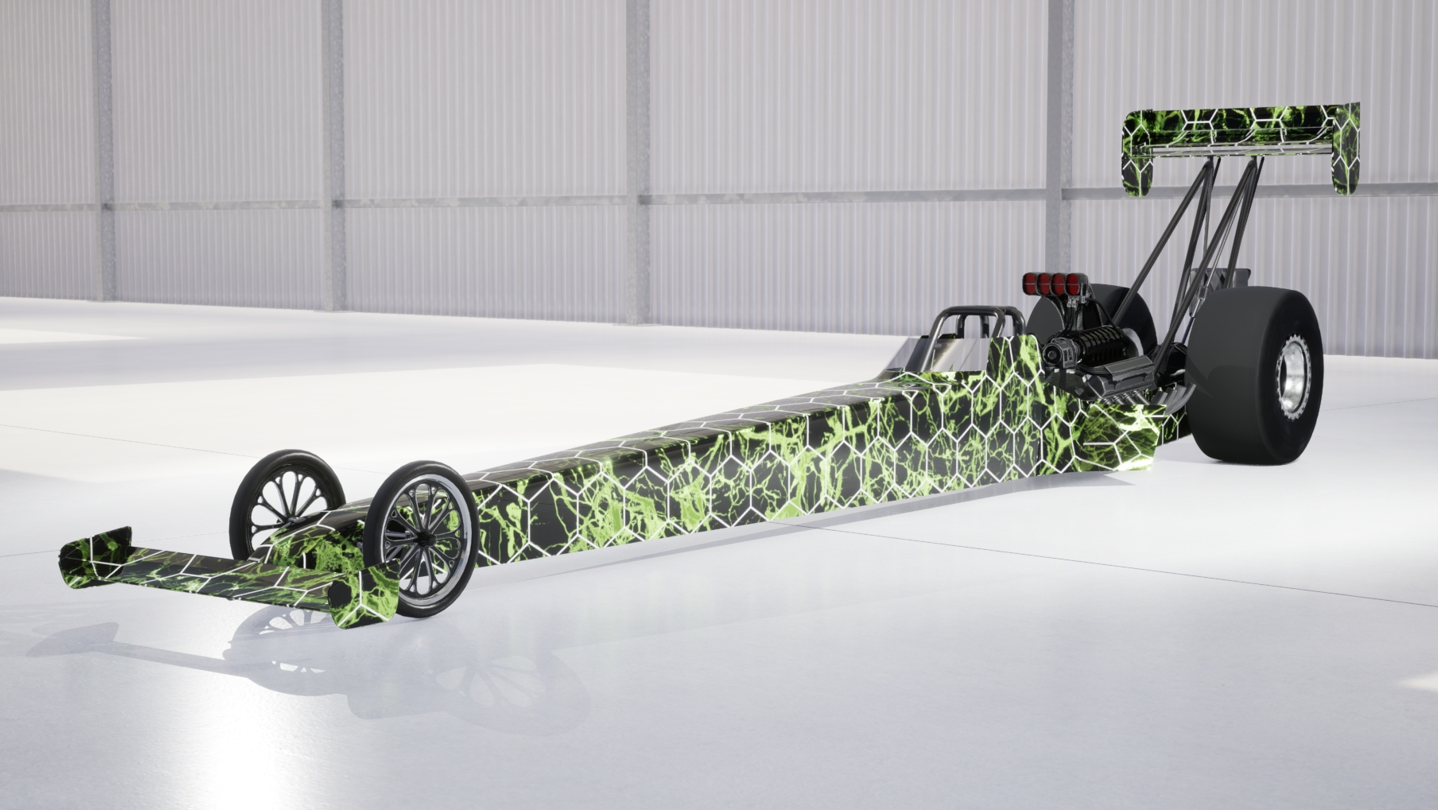 Drag Battle Top Fuel has an in game economy. Winning rounds and competitions will earn you money, crashing will loose you money and losing will net you nothing. You can spend your winnings on customising your Top Fuel dragster by changing colours and paint schemes, or buying custom liveries to make your vehicle stand out. There are a number of different liveries featuring retro, modern and futuristic designs. All unique and eye catching designs, which can be purchased with winnings or by completing challenges.