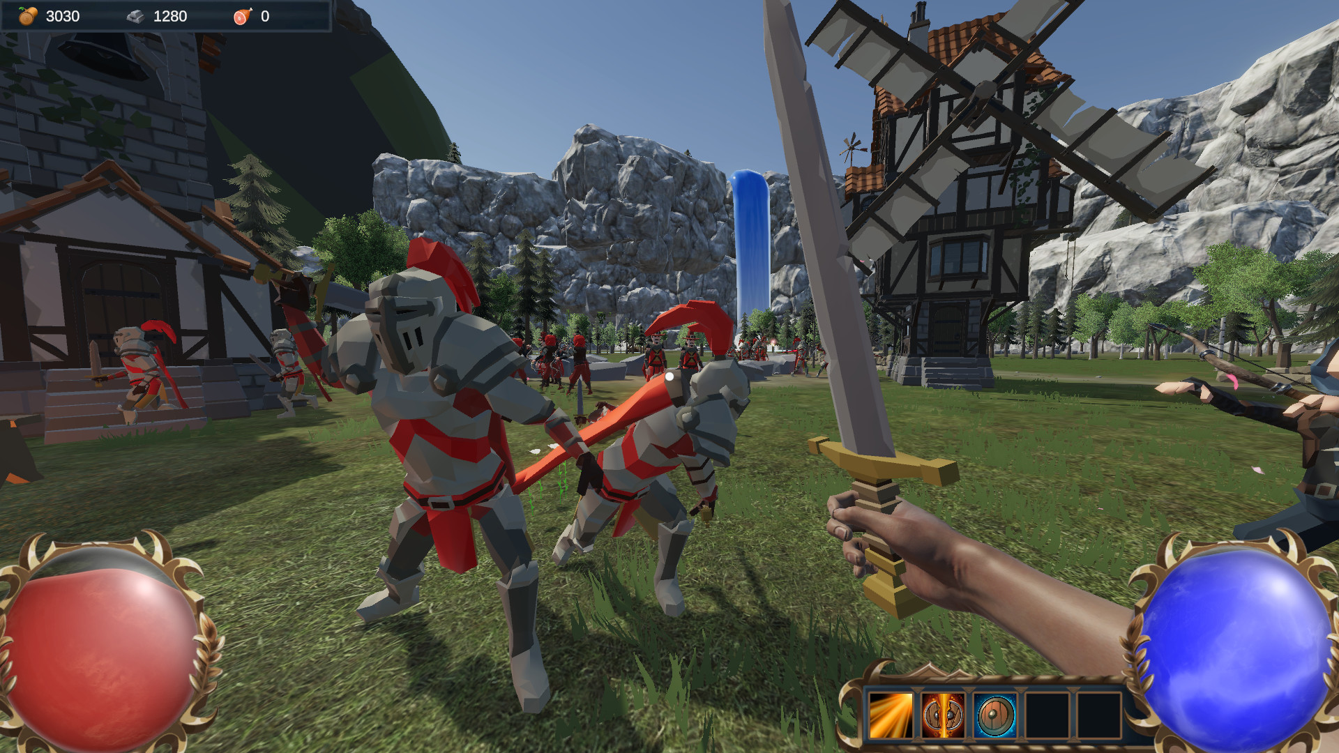 God Save Us is an RTS/God game where you control a village and use your powers to defend the villagers against waves of enemies. Your main power is the ability to possess any friendly unit and use them to fight in first-person. There are 4 types of units at the moment that you can control: Warrior, Archer, Mage and Villager.