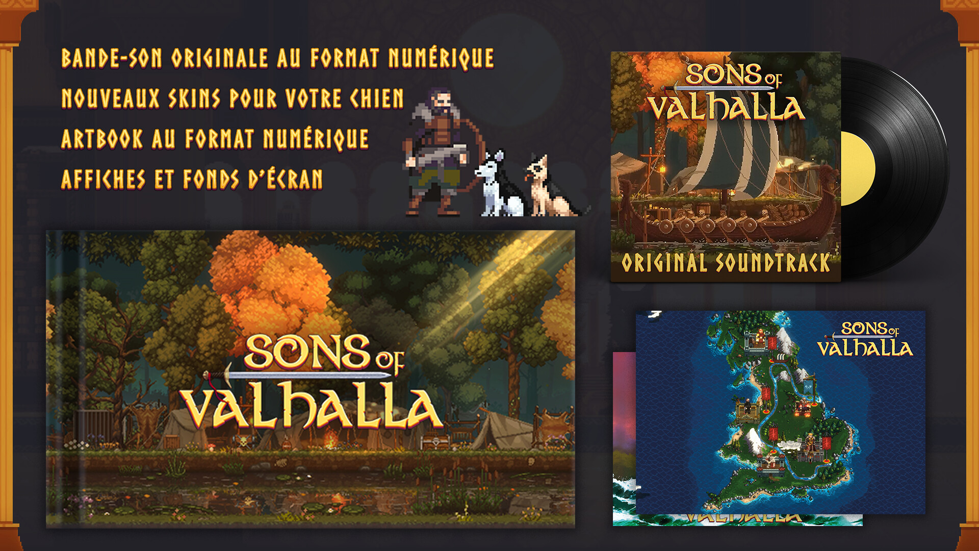• Une bande-son composée sur mesure pour accompagner le périple de Thorald Olafson dans Sons of Valhalla. Ses 18 titres sont disponibles aux formats MP3 et WAV.