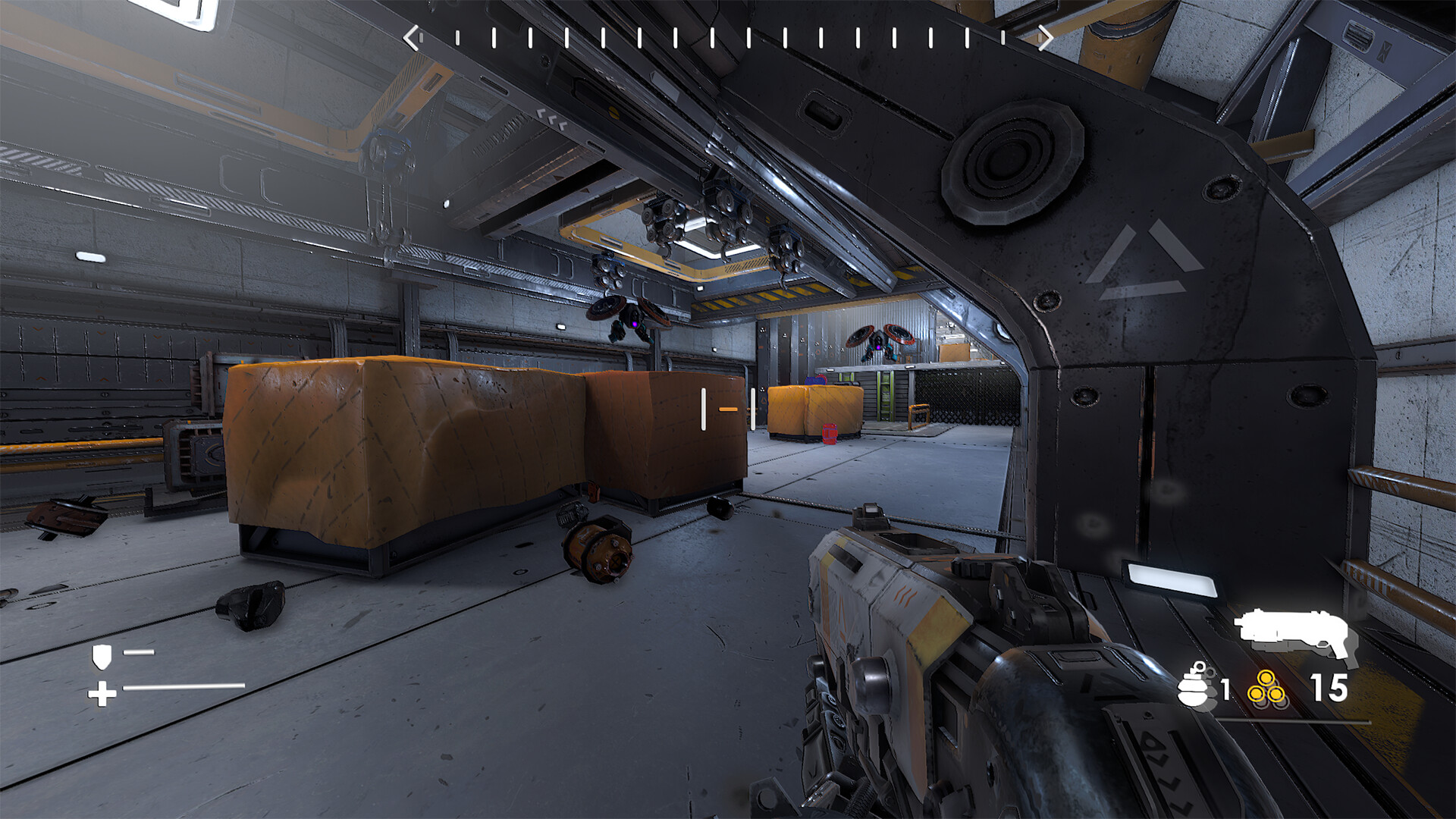 Try yourself in the role of an elite class OVERGUN mercenary who will have to deal with the crazed robots of the EARTH ROBOTICS corporation. As a result of experiments on artificial intelligence, it goes out of control and turns the lunar base into a robot production factory. You have to solve this problem and destroy the army of robots on your way, and also find out what EARTH ROBOTICS was really doing.