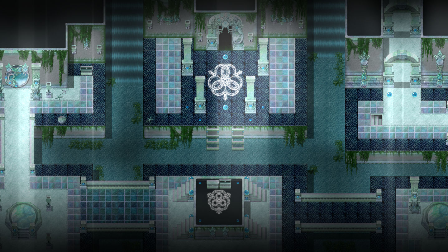 Add a legendary Mermaid Palace to your RPG! Soft blue and green tones, coordinated statues and pillars, and lots of details make the perfect backdrop for your search for mystical people of the sea!