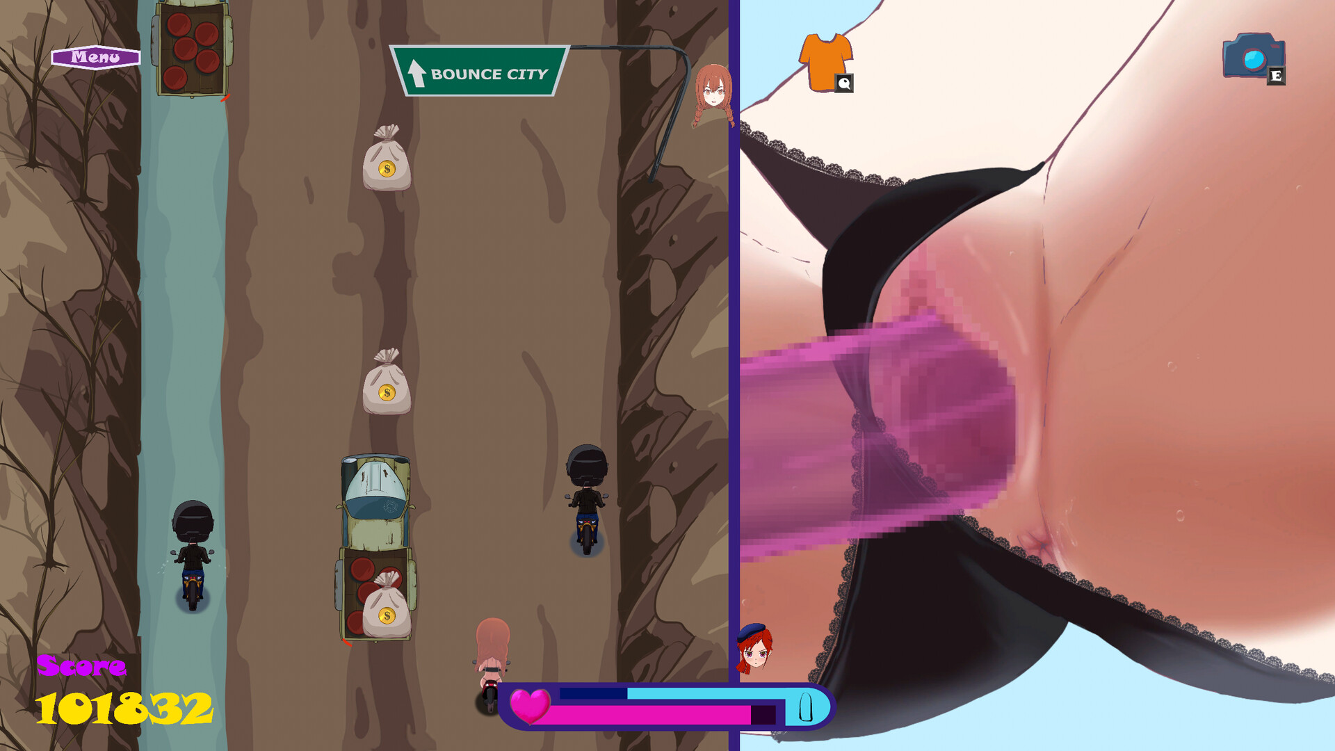 Your girls are drawn to the mysterious Bounce City, guided by their trusty dildo. The more pleasure they feel, the closer they seem to get to the city… but it’s an endless ride. Will they make it? ¯\( ͡◡͜ʖ ͡◡)