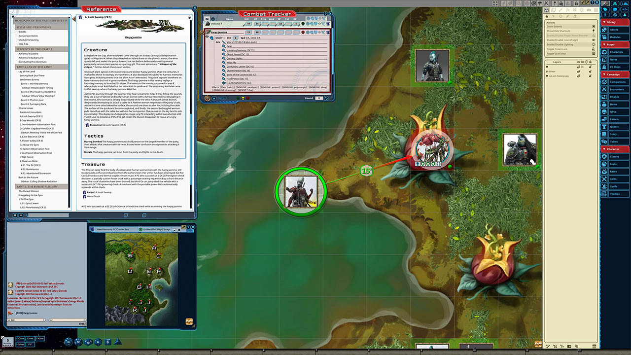 • Tokens for each encounter are all pre-placed in starting locations on the map. You can edit these on the fly.