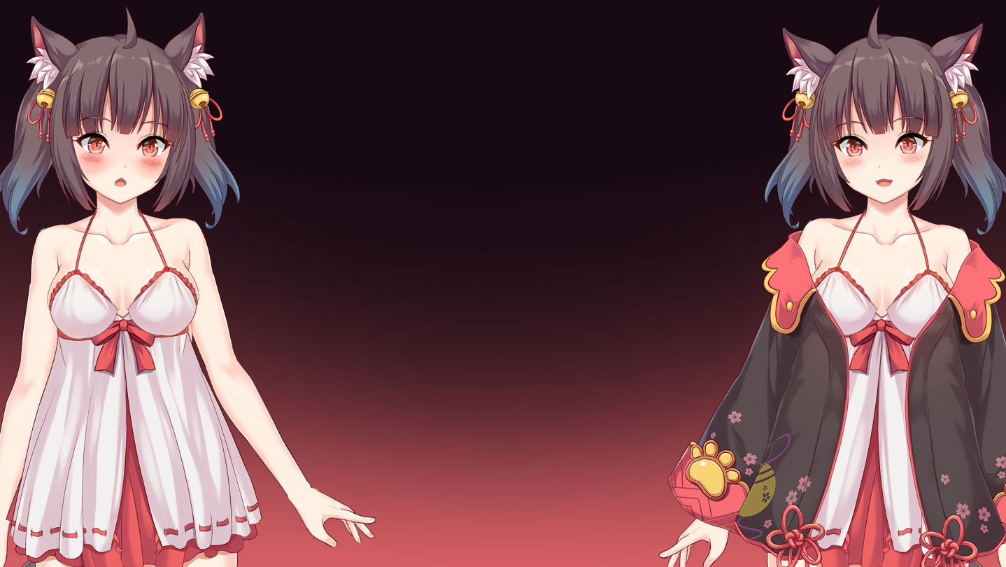 The game is a casual game where you have to keep an eye on the cat girl's condition, cleanliness... Hunger... etc.