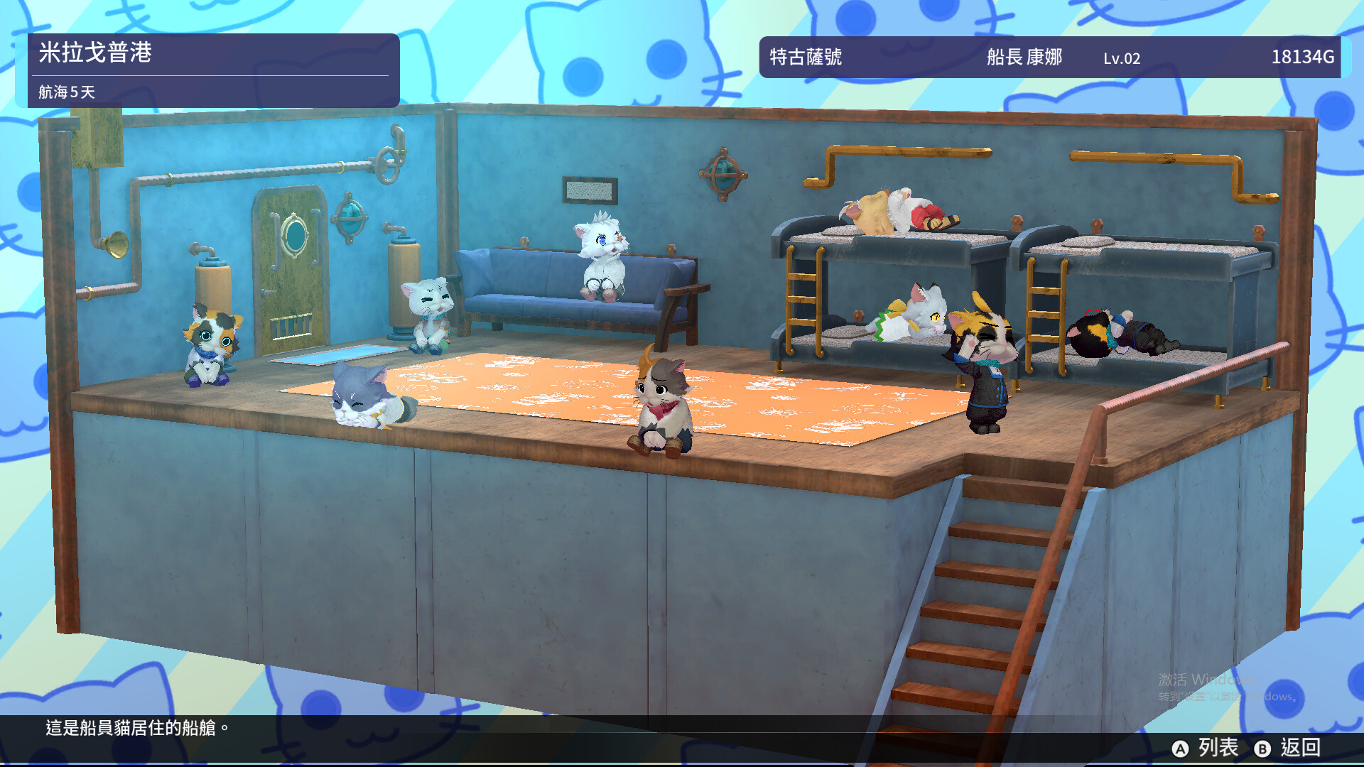 本遊戲中,你將同AI貓貓(船員)們一起遠航,駕駛自己的船艦,展開驚險的冒險旅程。遊戲有兩種基礎模式:航海模式與港口模式。在航海模式中,你將遇見其他船隻或海洋中的怪物進行激烈戰鬥;而港口模式中,你則可升級改造船艦,調整船員陣容,把戰鬥中獲取的資源兌換成金幣。