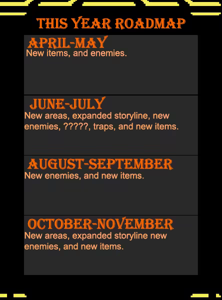 This is the roadmap for the game showing the goals for the major updates I have planned.
