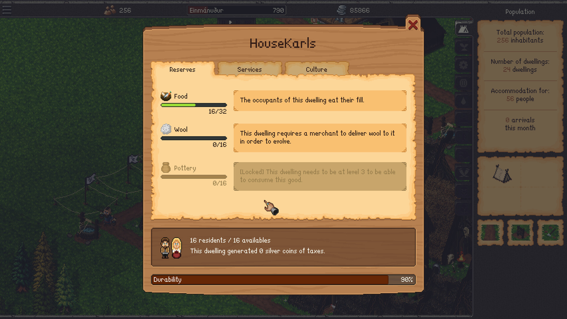 The interface of VIKING – Sagas of the Norse Lands has been designed for immediate understanding. The side panel brings together all the essential information and gives you quick access to the buildings and management data associated with each category.