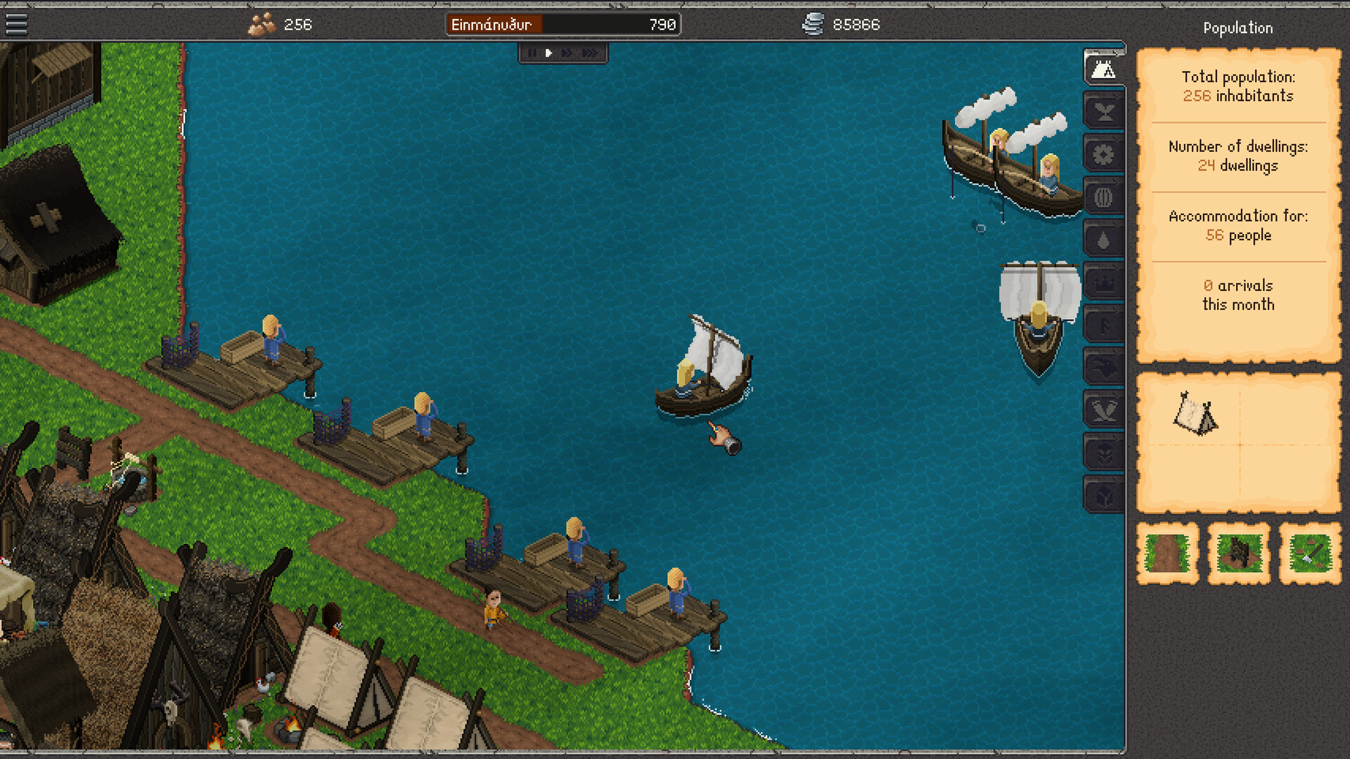 The interface of VIKING – Sagas of the Norse Lands has been designed for immediate understanding. The side panel brings together all the essential information and gives you quick access to the buildings and management data associated with each category.