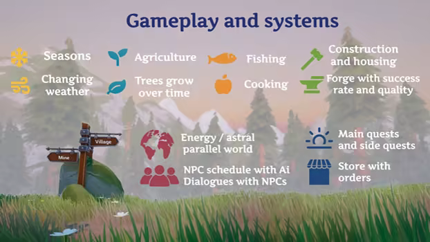 • Quests : Be part of the community of Alaya's Valley, run your business, meet the villagers here and see what you can do for them.