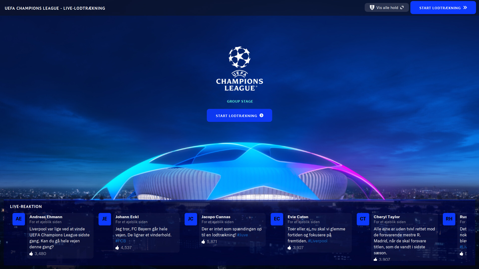 Oplev spændingen i UEFA Champions League, UEFA Europa League og UEFA Europa Conference League. Helt nye turneringslodtrækninger og officielle holdark, scoringstavler og målgrafik gør UEFA’s klubturneringer endnu mere livagtige.