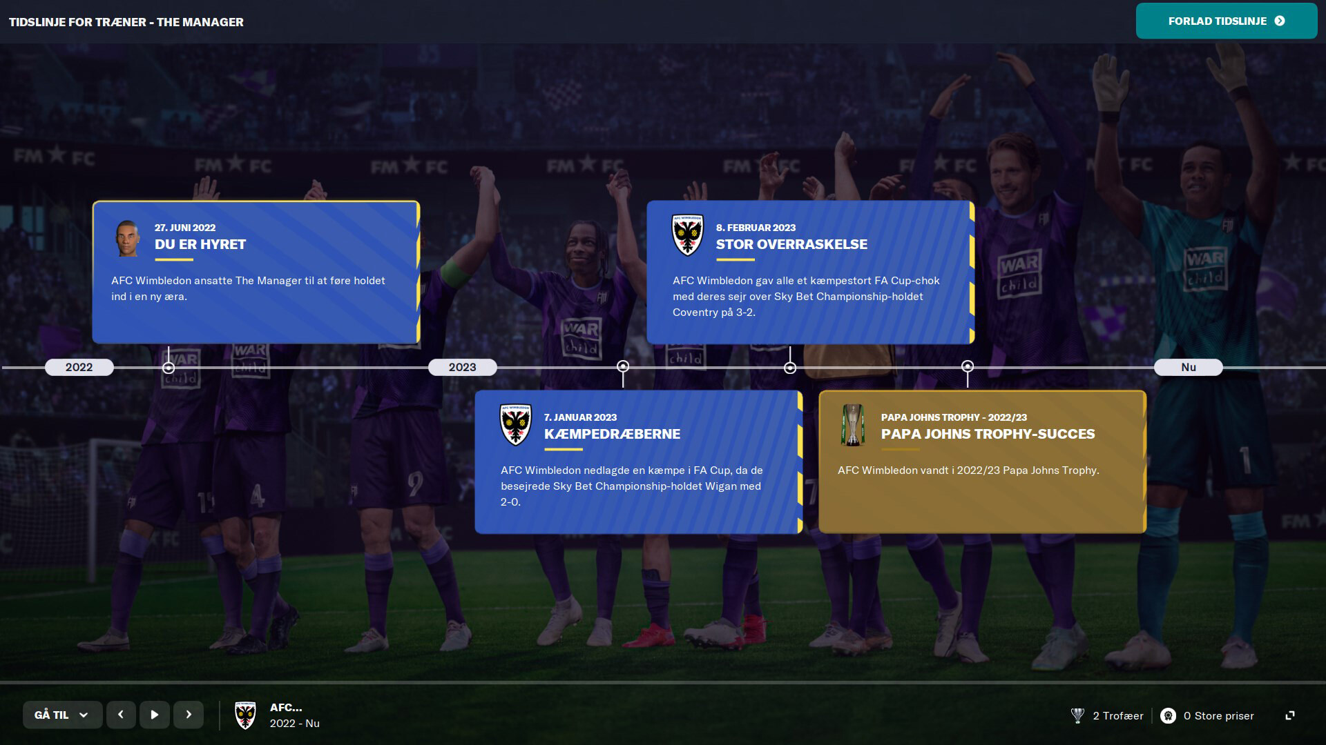 Hold øje med dine karrierefremskridt med den helt nye Dynamisk tidslinje for manager. Uanset om du har givet en ungdomsspiller debut på førsteholdet eller vundet UEFA Champions League, kan du nu nyde og dele din personlige Football Manager-historie som aldrig før.