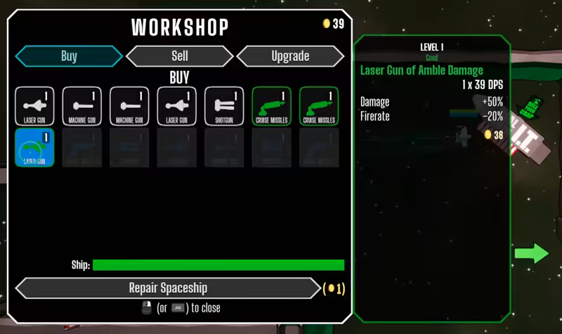 • Collect EXP to upgrade your ship with randomized level-ups.