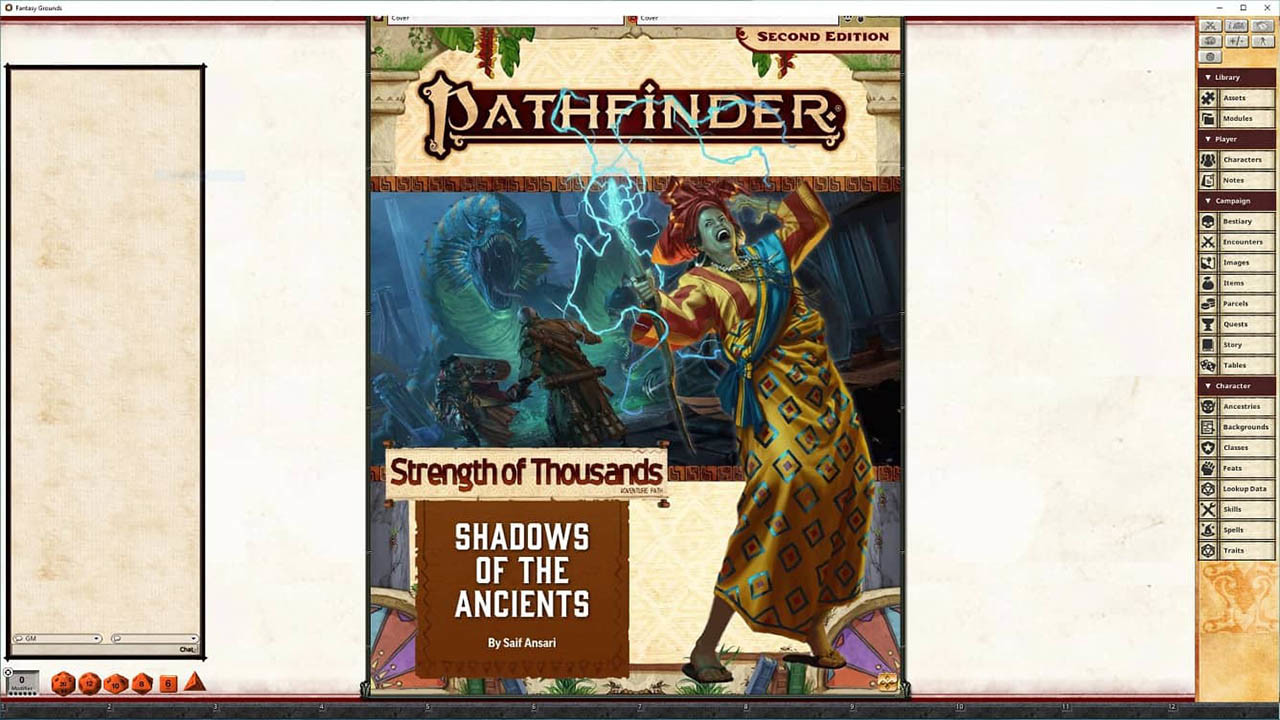 Requires: The free Fantasy Grounds virtual tabletop (VTT) software and the included Pathfinder 2.0 ruleset.