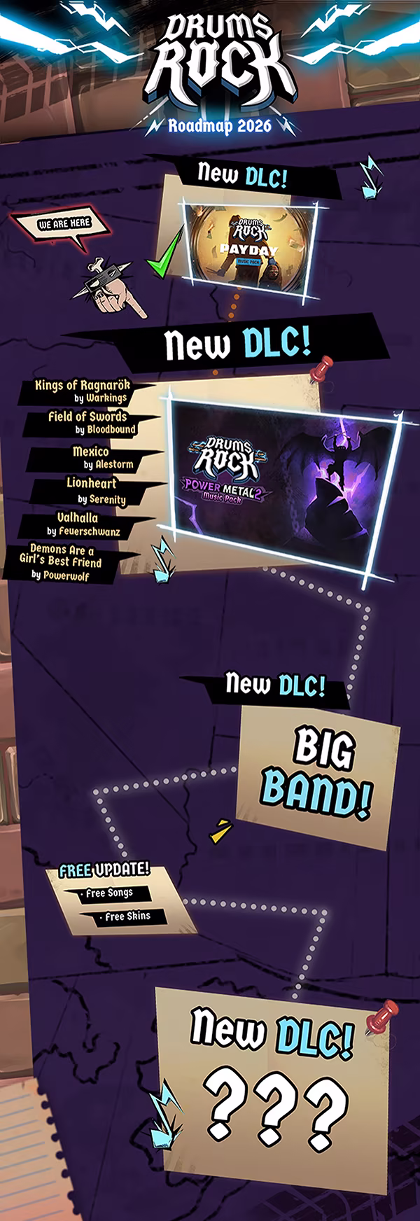 Includes 62 items: Drums Rock, Drums Rock: Green Day - 'American Idiot', Drums Rock: Undertale - 'MEGALOVANIA', Drums Rock: Undertale - 'Hopes And Dreams', Drums Rock: The Offspring - 'You’re Gonna Go Far, Kid', Drums Rock: Green Day - 'Holiday', Drums Rock: The Proclaimers - 'I'm Gonna Be (500 Miles)', Drums Rock: Disturbed - 'Stricken', Drums Rock: Spacehog - 'In the Meantime', Drums Rock: Lit - 'My Own Worst Enemy', Drums Rock: Collective Soul - 'Shine', Drums Rock: Simple Plan - 'Welcome to My Life', Drums Rock: Simple Plan - 'Shut Up!', Drums Rock: Simple Plan - 'Crazy', Drums Rock: Simple Plan - 'Time to Say Goodbye', Drums Rock: HammerFall - 'Hearts On Fire', Drums Rock: Battle Beast - 'King for a Day Track', Drums Rock: Blind Guardian - 'Blood Of The Elves', Drums Rock: Fifth Angel - 'When Angels Kill Track', Drums Rock: Twilight Force - 'Twilight Force', Drums Rock: NorthTale - 'Higher', Drums Rock: Green Day - 'The American Dream Is Killing Me', Drums Rock: Disturbed - 'Down with the Sickness', Drums Rock: Disturbed - 'Ten Thousand Fists', Drums Rock: Pantera - 'Walk', Drums Rock: Pantera - '5 Minutes Alone', Drums Rock: Alestorm - 'Keelhauled', Drums Rock: Gloryhammer - 'Hootsforce', Drums Rock: Delain - 'Stardust', Drums Rock: Northward - 'While Love Died', Drums Rock: Feuerschwanz - 'Das Elfte Gebot', Drums Rock: Angus McSix - 'Master of the Universe', Drums Rock: Alter Bridge - 'Silver Tongue', Drums Rock: Powerwolf - 'Army of the Night', Drums Rock: Jinjer - 'Pisces', Drums Rock: Samurai - 'Chippin’ In', Drums Rock: Samurai - 'Never Fade Away', Drums Rock: Samurai - 'The Ballad of Buck Ravers', Drums Rock: Samurai - 'A Like Supreme', Drums Rock: Linkin Park - 'In the End', Drums Rock: Linkin Park - 'Numb', Drums Rock: Linkin Park - 'Faint', Drums Rock: Linkin Park - 'Somewhere I Belong', Drums Rock: Linkin Park - 'One Step Closer', Drums Rock: Who-ya Extended - 'VIVID VICE', Drums Rock: KANA-BOON - 'Silhouette', Drums Rock: TK from Ling tosite sigure - 'unravel', Drums: Yoko Takahashi - 'The Cruel Angel's Thesis', Drums Rock: Wind Rose - 'Drunken Dwarves', Drums Rock: Powerwolf - 'Sainted by The Storm', Drums Rock: Visions Of Atlantis - 'Melancholy Angel', Drums Rock: Angus McSix - 'Laser-Shooting Dinosaur', Drums Rock: Payday 3 - 'No Rest for the Wicked', Drums Rock: Payday 3 - 'Da Capo', Drums Rock: Payday 2 - 'On the Road', Drums Rock: Payday 2 - 'Death Wish', Drums Rock: Powerwolf - 'Demons Are a Best Girl's Friend', Drums Rock: Serenity - 'Lionheart', Drums Rock: Feuerschwanz - 'Valhalla', Drums Rock: Alestorm - 'México', Drums Rock: Bloodbound - 'Field of Swords', Drums Rock: Warkings - 'Kings of Ragnarök'Show lessShow more