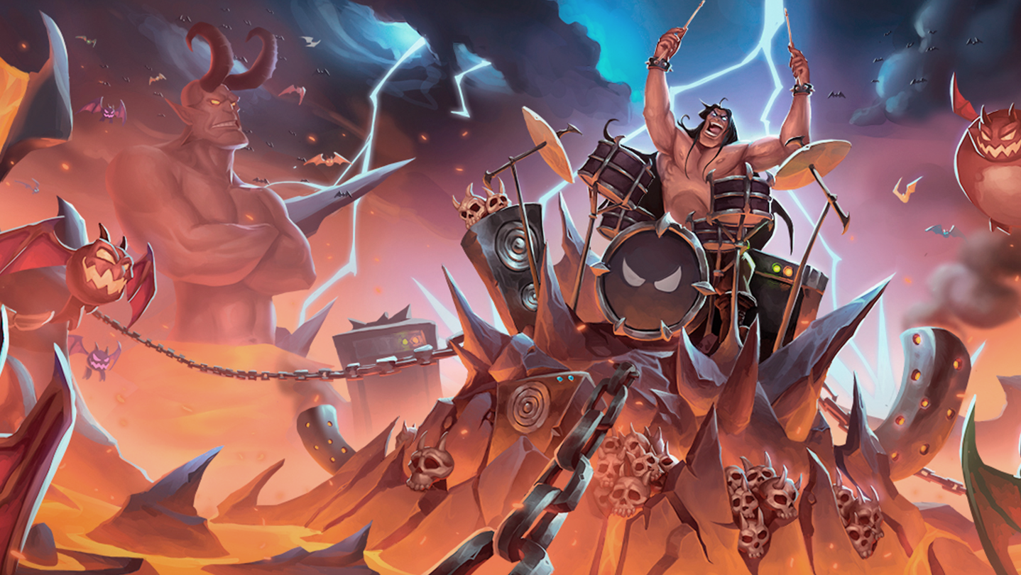 Play the drums in virtual reality like a Rock Hero, and survive in hell fighting against demons and their boss!